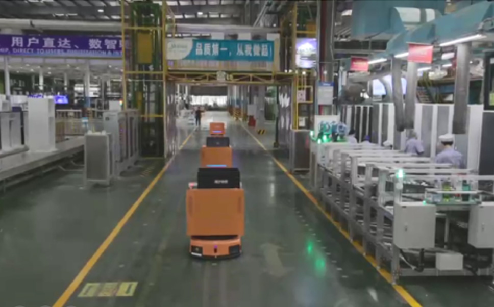 为车载冰箱物流配送打造的智能解决方案,,包含产中物流通过潜伏举升AMR搬运至线边,,产后成品物流智能仓储,,流程包含产中物流智能齐套入库,,,,线边安灯叫料AMR智能配送至线边,,成品入库、、、出库,,,通过无人堆高车机器人,,,,智能仓储管理替代人工作业管理,,,,实现更高存储、、更高效率、、、、更具柔性化的解决方案。。